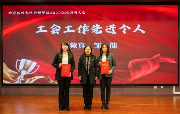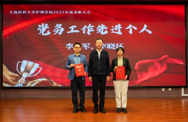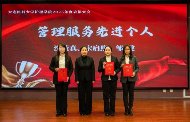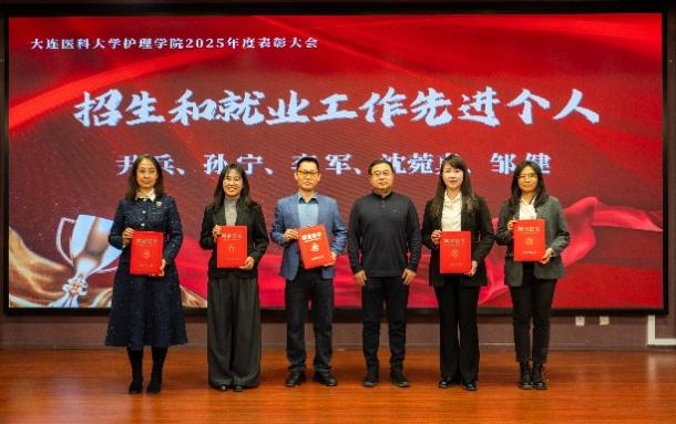 1月12日,护理学院2025年度工作总结暨表彰大会在图书馆二楼多功能厅举行。护理学院原院长、大连市护理学会理事长沙丽艳,党委学生工作部部长、学生处处长苍健,招生与就业处处长张勇,工会主席刘中秋,团委书记刘恭辉,交流合作处副处长王宁,教务处副处长杨宏爱,大学生创新创业指导中心副主任隋华,大连市中心医院护理部主任郑英花,大连市第七人民医院护理部主任吴玉兰,学院全体教职工,附属医院、教学基地教师代表以及学生代表共120余人参加会议。会议由学院党总支书记兼副院长霍小舟主持。